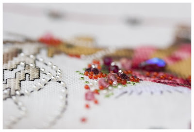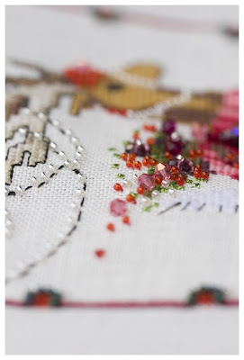 Nora Corbett "Dancer", Belfast Antique White linen, DMC, Waterlillies, Madeira (silk), KreinikMy Christmas deer is finished, the only thing left are beads. Some of the colors were changed