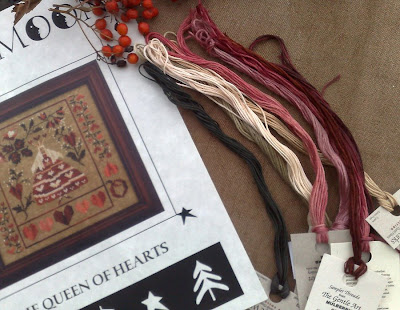 Prairie Moon "The Queen of Hearts", hand dyed Belfast linen, Gentle Art and Weeks Dye Works floss